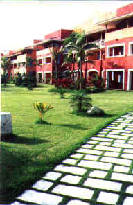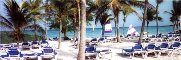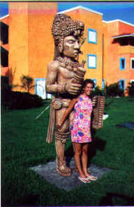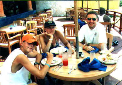June 2001 Snorkeling and beaches were the requirements for our family vacation this year. The kids had never been anywhere tropical and the thought of long, sunny days on a white sand beach rimmed in translucent turquoise intrigued them. Tyler started investigating every possible option early on, as usual, but this time it was 2 weeks before departure before we knew exactly where we were going. Every Caribbean destination imaginable was considered, and Fiji was even in the running for a couple hours. At one point we had flights to Barbados but even with free flights, it was going to be mighty expensive. Worry Free Vacations came to the rescue. This was one of those "last minute" vacation deals that we had never taken advantage of in the past. This time the wait paid off. We got an excellent deal on a charter flight and all-inclusive resort about an hour south of Cancun, what is known as the Mayan Riviera. The flights were only $200 each and we left from Oklahoma City. What? Oklahoma City? Yes, it was a bit of a drive, but we left a day early and visited my sister’s family in Wichita for a day. It was also worth the cheap, direct flight. The only down side to this was that on the flight home we had to stop in San Antonio to go through customs and immigration because the airport in Oklahoma City doesn’t have that capability. That touch down really added to the return time since it’s only a three hour flight to begin with and the stop in San Antonio added at least an hour and a half. This was the first international trip for the kids. We didn’t have to get passports for them to go to Mexico, but since we didn’t know where we were going until a couple weeks ahead of time, we had applied for them earlier. Staying at an all-inclusive resort with its wide variety of activities and endless buffets seemed like a good way to allow the kids some independence while also introducing them to a foreign culture. Granted, the foreignness of this resort was subtle, but they were exposed to the Spanish language, Mexican taxi drivers and pesos. Landing in Cancun and passing through immigration and customs was a breeze. We quickly walked outside to see a man holding a "Worry Free Vacations" sign, told the man with the clipboard our name and were assigned a bus to the resort. This took maybe 10 minutes total for us to find our bus, load the luggage and be on our way. An hour later we were dropped off at the Barcelo resort.